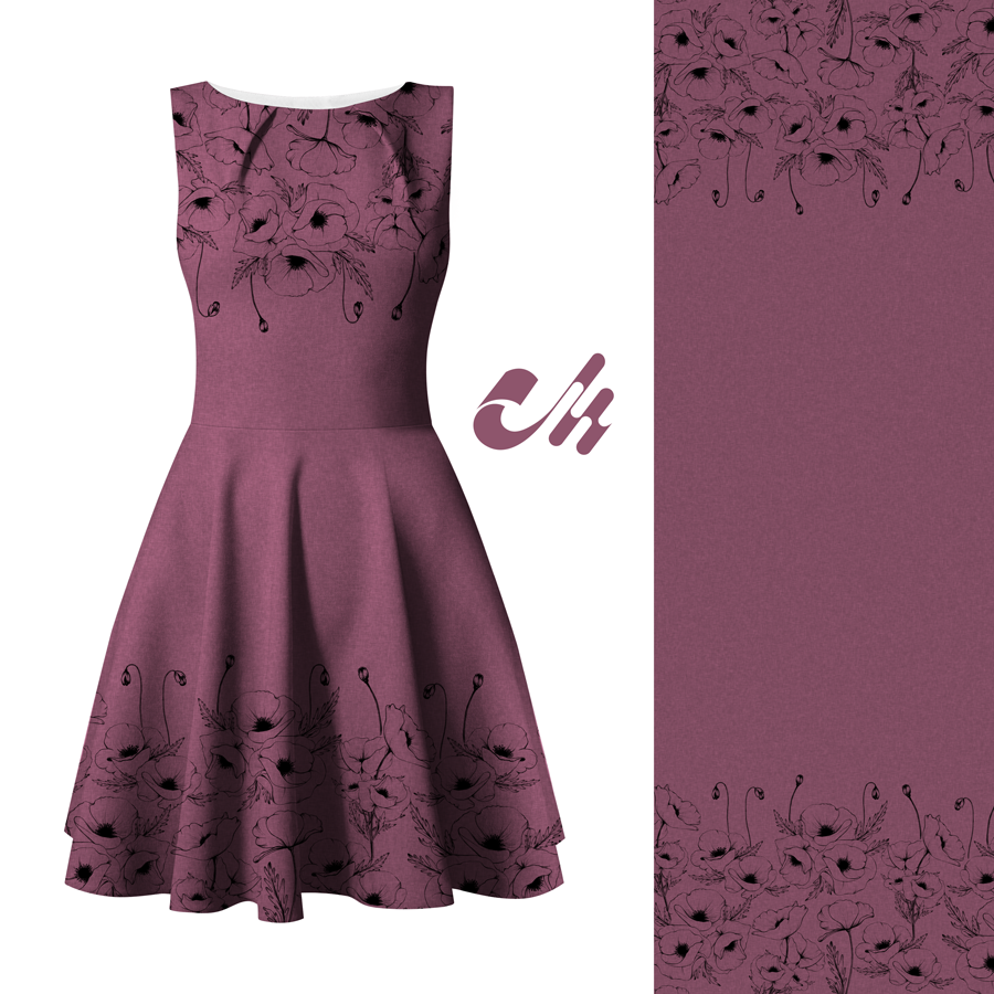 Die Bordüre verläuft rechts und links und ist ca. 35 cm breit. Der Fadenlauf ist somit quer zum Muster, was jedoch kein Problem darstellt, da der Stoff in beide Richtungen gleich elastisch ist und auch in beide Richtungen gleich schön fällt.