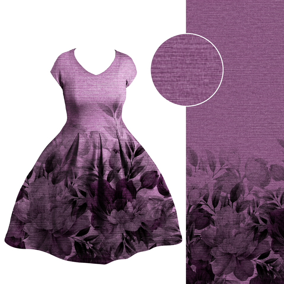 Die Bordüre ist einseitig und ca. 90 cm hoch, für normal lange und Maxikleider geeignet. Der Fadenlauf ist quer zum Muster, was jedoch kein Problem darstellt, da der Stoff in beide Richtungen gleich elastisch ist und auch in beide Richtungen gleich schön fällt.