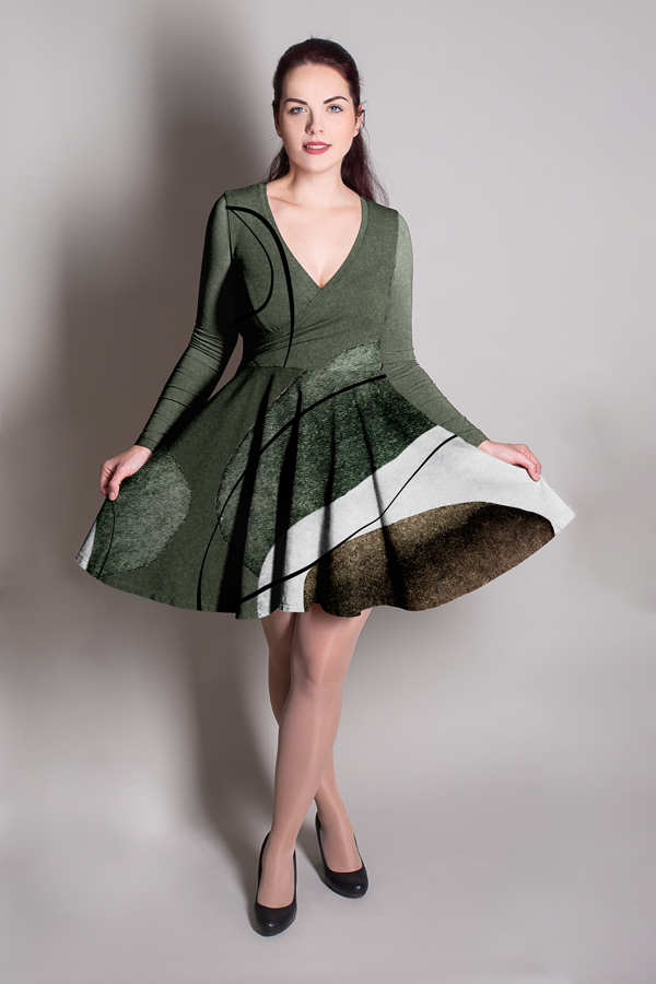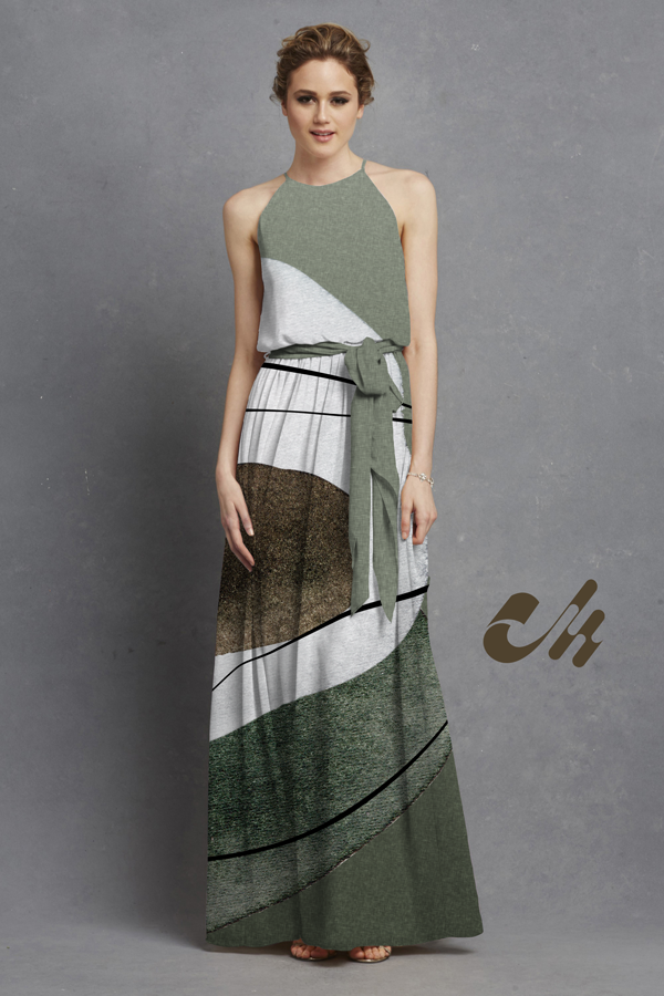 Die Bordüre ist einseitig und ca. 100 cm hoch – sehr gut für Maxikleider geeignet. Der Fadenlauf ist somit quer zum Muster, was jedoch kein Problem darstellt, da der Stoff in beide Richtungen gleich elastisch ist und auch in beide Richtungen gleich schön fällt.