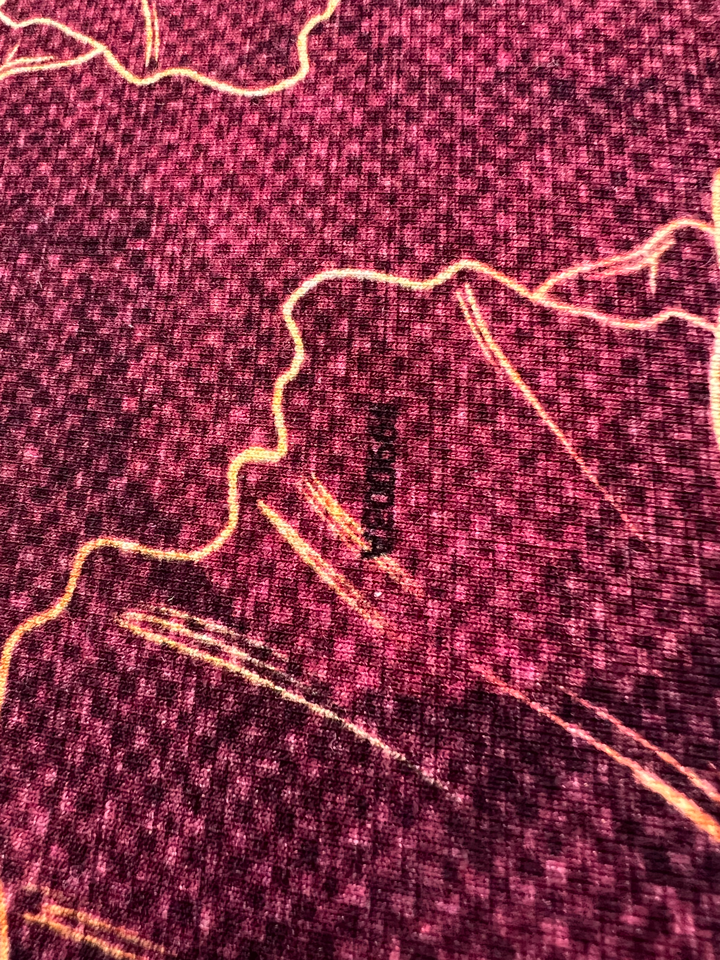Die Streifen verlaufen entlang der Webkante. Der Fadenlauf ist quer zum Muster, was jedoch kein Problem darstellt, da der Stoff in beide Richtungen gleich elastisch ist und auch in beide Richtungen gleich schön fällt.