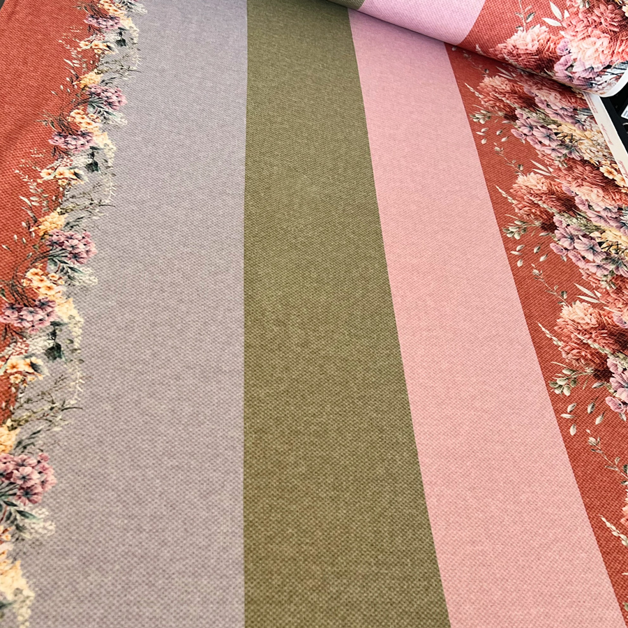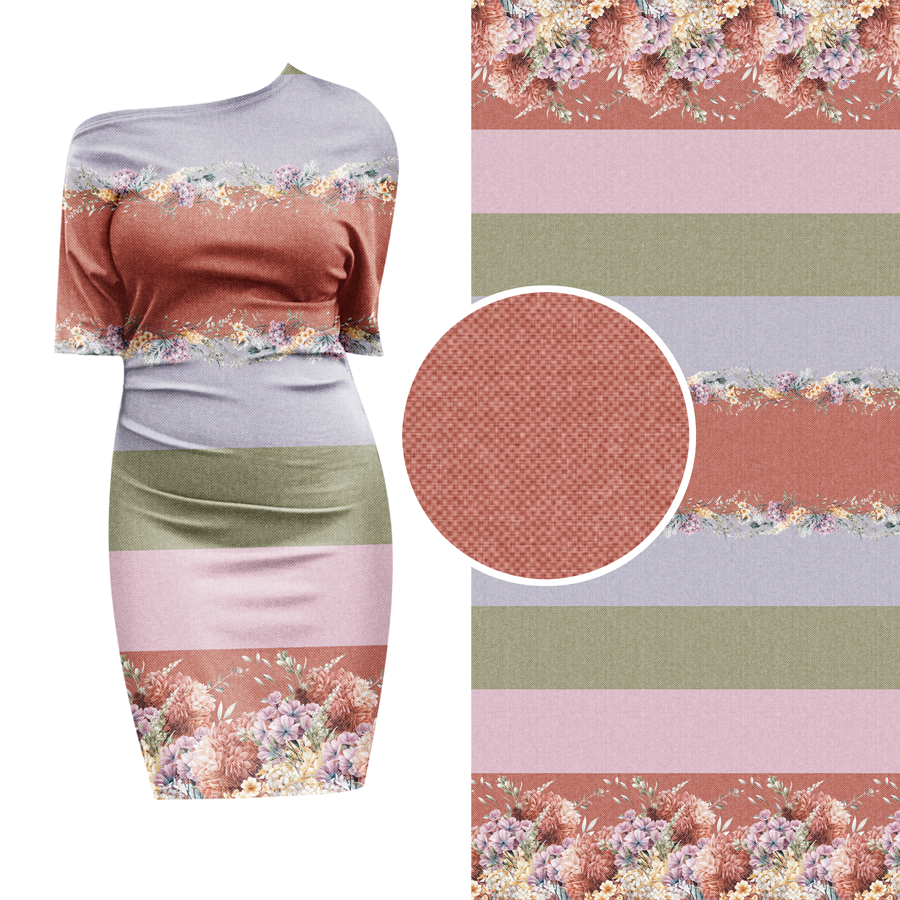 Die Bordüre ist zweiseitig und bietet genug Raum für kreative Kleidung. Der Fadenlauf ist quer zum Muster, was jedoch kein Problem darstellt, da der Stoff in beide Richtungen gleich elastisch ist und auch in beide Richtungen gleich schön fällt.