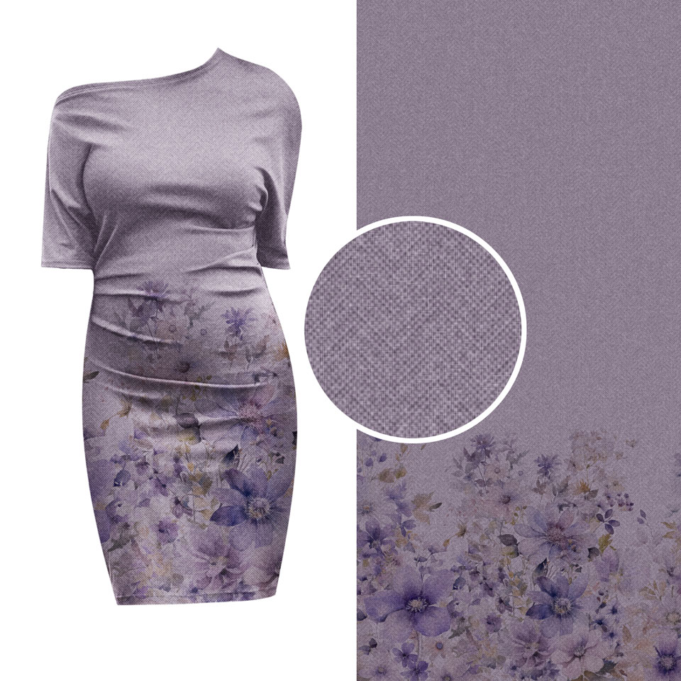 Der Fadenlauf der Bordüre (einseitig und ca. 60 cm breit) ist quer zum Muster, was jedoch kein Problem darstellt, da der Stoff in beide Richtungen gleich elastisch ist und auch in beide Richtungen gleich schön fällt.