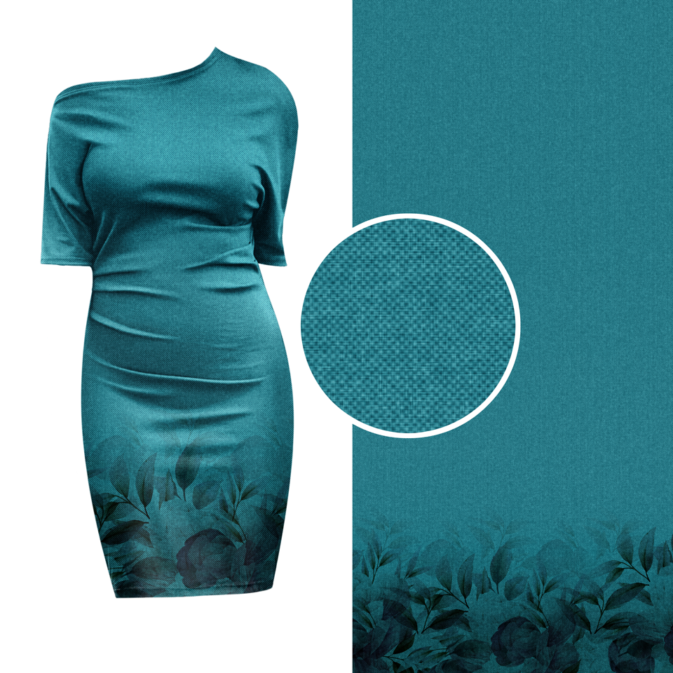 Die Bordüre ist einseitig un d ca. 40 cm hoch, für normal lange und Maxikleider geeignet. Der Fadenlauf ist quer zum Muster, was jedoch kein Problem darstellt, da der Stoff in beide Richtungen gleich elastisch ist und auch in beide Richtungen gleich schön fällt.