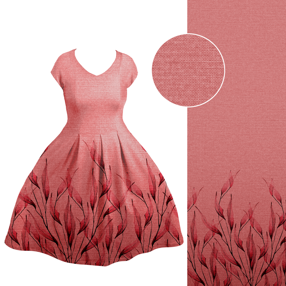 Die Bordüre ist einseitig 60 cm hoch und verläuft entlang der Webkante. Der Fadenlauf ist quer zum Muster, was jedoch kein Problem darstellt, da der Stoff in beide Richtungen gleich elastisch ist und auch in beide Richtungen gleich schön fällt.