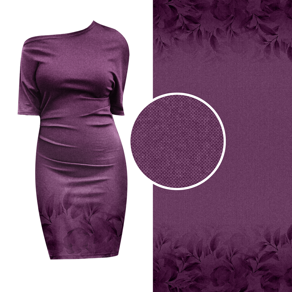 Die Bordüre ist zweiseitig und jeweils ca. 35 cm hoch. Der Fadenlauf ist quer zum Muster, was jedoch kein Problem darstellt, da der Stoff in beide Richtungen gleich elastisch ist und auch in beide Richtungen gleich schön fällt.