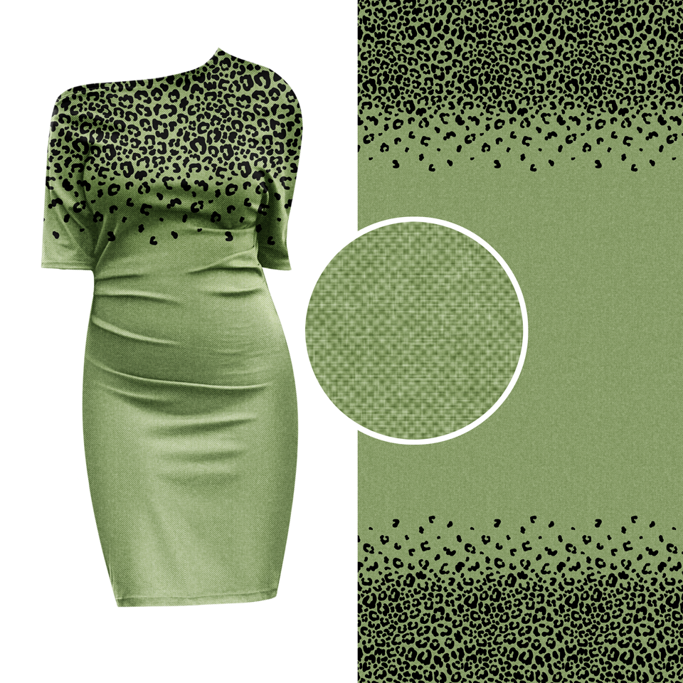Die Bordüre ist zweiseitig ca. 40 cm hoch und bietet genug Raum für kreative Kleidung. Der Fadenlauf ist quer zum Muster, was jedoch kein Problem darstellt, da der Stoff in beide Richtungen gleich elastisch ist und auch in beide Richtungen gleich schön fällt.