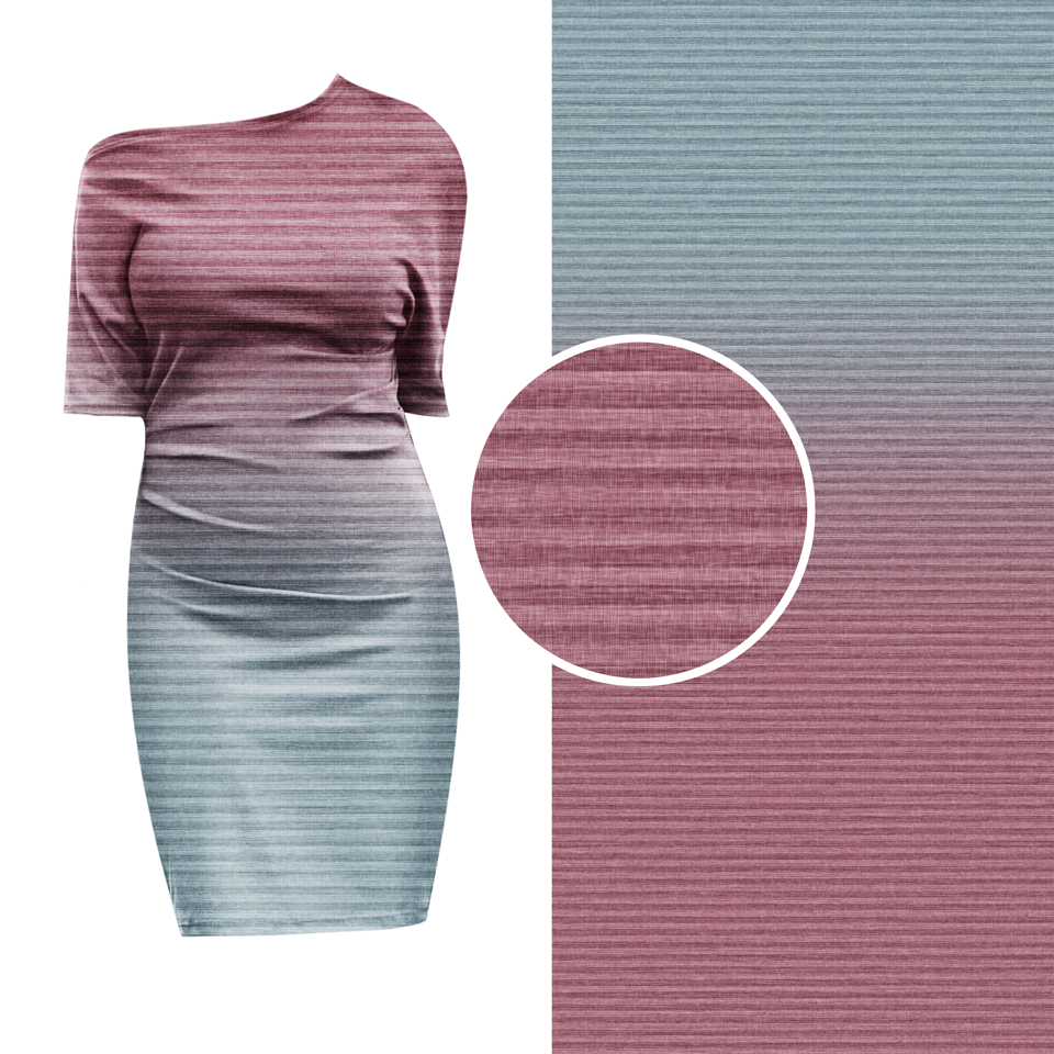 Die Verlauf verläuft von Webkante zur Webkante. Der Fadenlauf ist quer zum Muster, was jedoch kein Problem darstellt, da der Stoff in beide Richtungen gleich elastisch ist und auch in beide Richtungen gleich schön fällt.