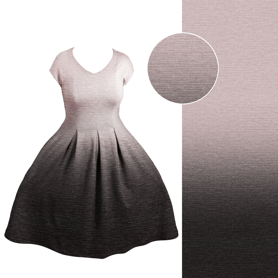 Die Verlauf verläuft von Webkante zur Webkante. Der Fadenlauf ist quer zum Muster, was jedoch kein Problem darstellt, da der Stoff in beide Richtungen gleich elastisch ist und auch in beide Richtungen gleich schön fällt.