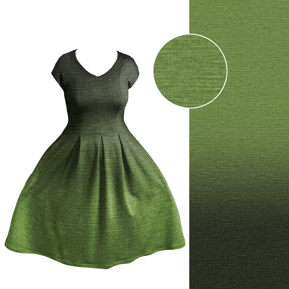 Die Verlauf verläuft von Webkante zur Webkante. Der Fadenlauf ist quer zum Muster, was jedoch kein Problem darstellt, da der Stoff in beide Richtungen gleich elastisch ist und auch in beide Richtungen gleich schön fällt.
