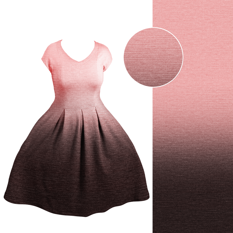 Die Verlauf verläuft von Webkante zur Webkante. Der Fadenlauf ist quer zum Muster, was jedoch kein Problem darstellt, da der Stoff in beide Richtungen gleich elastisch ist und auch in beide Richtungen gleich schön fällt.