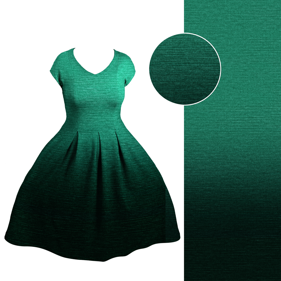 Die Verlauf verläuft von Webkante zur Webkante. Der Fadenlauf ist quer zum Muster, was jedoch kein Problem darstellt, da der Stoff in beide Richtungen gleich elastisch ist und auch in beide Richtungen gleich schön fällt.