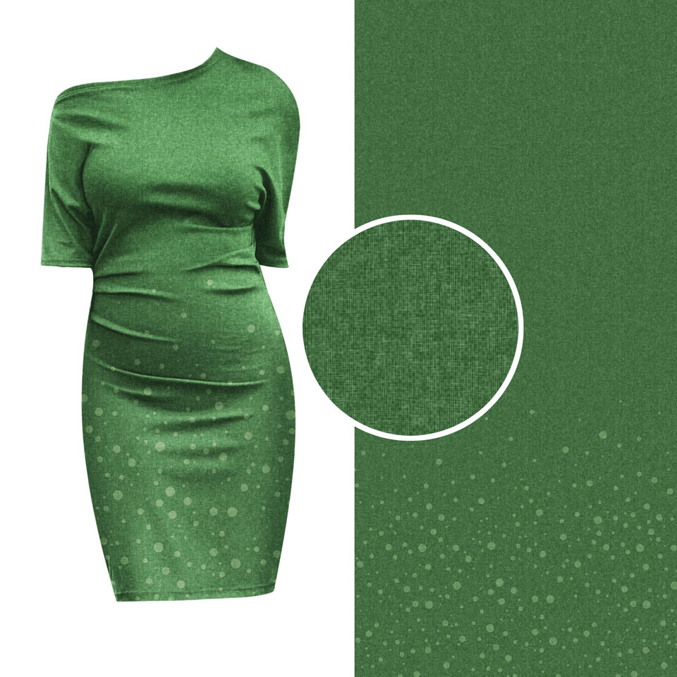 Die Bordüre ist ca. 60 cm breit und einseitig. Das Muster ist endlos, es ist kein Panel. Der Fadenlauf ist quer zum Muster, was jedoch kein Problem darstellt, da der Stoff in beide Richtungen gleich elastisch ist und auch in beide Richtungen gleich schön fällt.