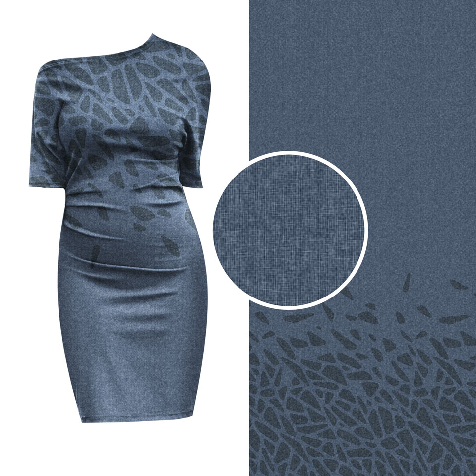 Die Bordüre ist ca. 60 cm breit und einseitig. Das Muster ist endlos, es ist kein Panel. Der Fadenlauf ist quer zum Muster, was jedoch kein Problem darstellt, da der Stoff in beide Richtungen gleich elastisch ist und auch in beide Richtungen gleich schön fällt.