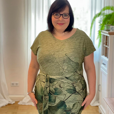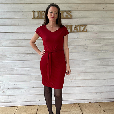 Uranus besticht durch ihr wunderschönes Knotendetail an der Seite. Brustabnäher und Rückenabnäher sorgen für einen perfekten Sitz. Dir gefällt die Knotenoptik, aber du magst es lieber nicht so figurnah? Dann schau dir unseren Schnitt Halo an.