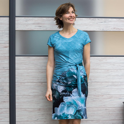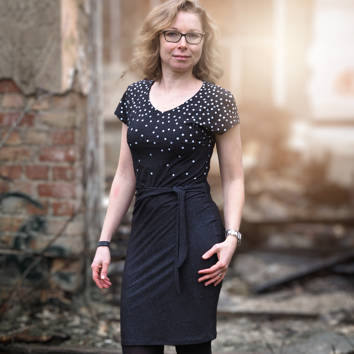 Uranus captivates with its beautiful knot detail on the side. Bust darts and back darts ensure a perfect fit. You like the knot look, but you prefer not to have it so figure-hugging? Then check out our Halo pattern.