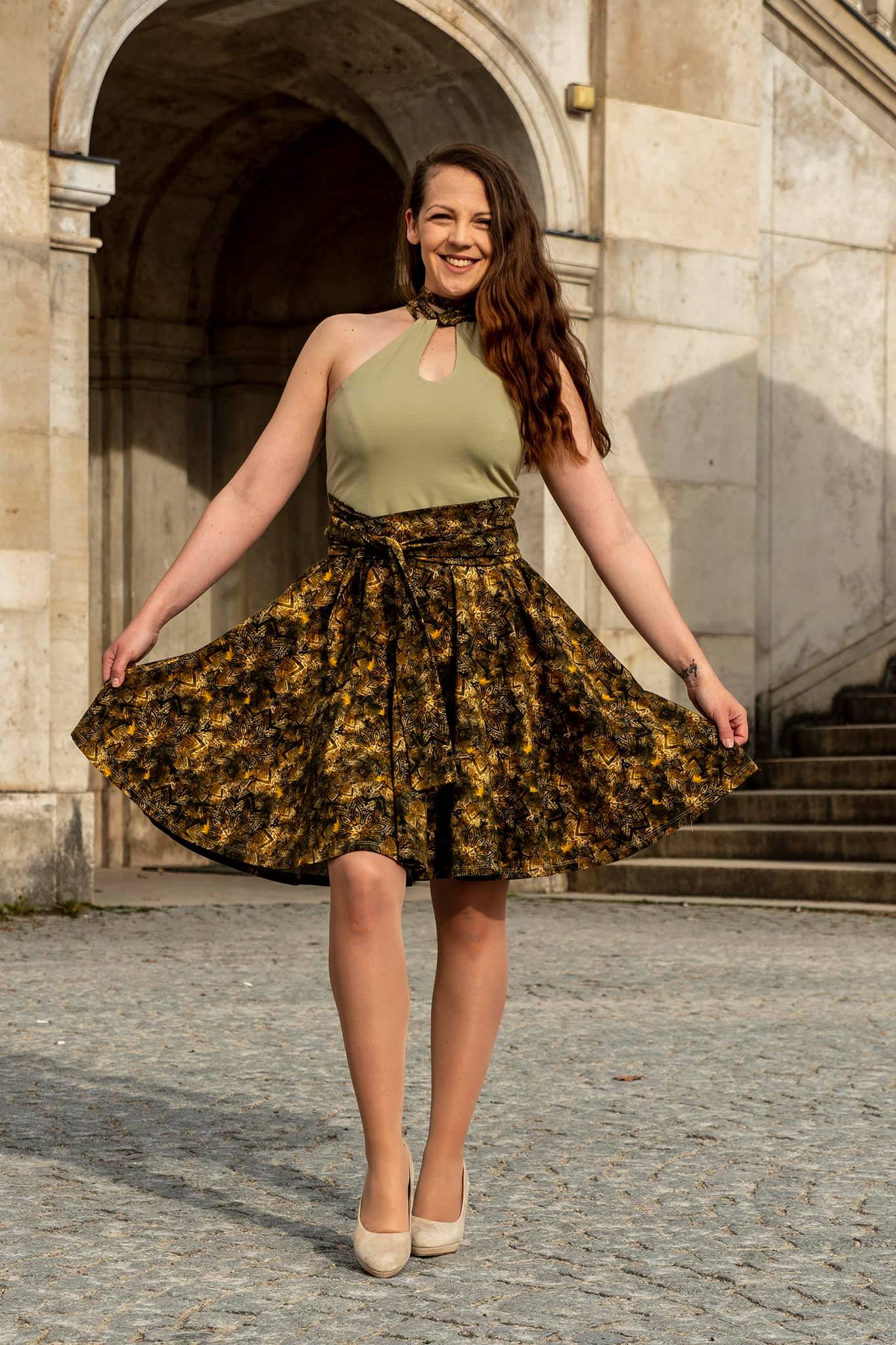 The Sinope summer dress is a wide swinging dream of a dress with a sophisticated drop neckline, which can also be left out if required. There are many different ways to attach the straps, so you can let your creativity run wild.