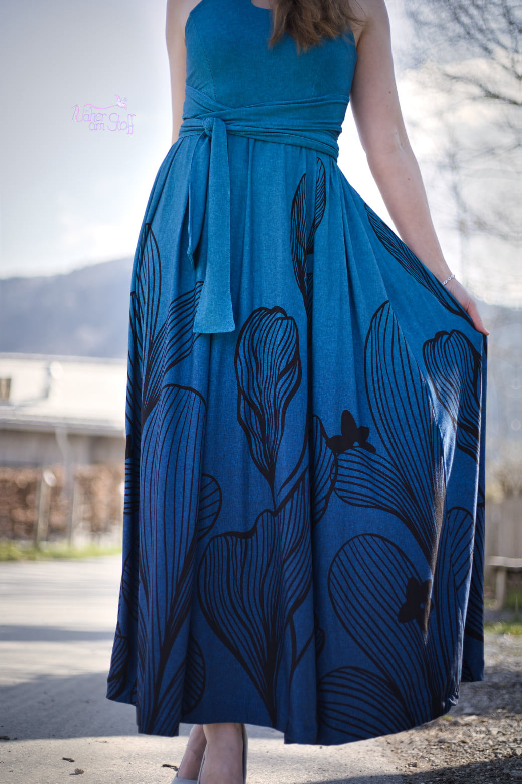 Das Sommerkleid Sinope ist ein weitschwingender Kleidertraum mit einem raffinierten Tropfenausschnitt, der bei Bedarf aber auch weggelassen werden kann. Die Möglichkeiten, die Träger anzubringen sind vielfältig, hier könnt ihr eurer Kreativität freien Lauf lassen.