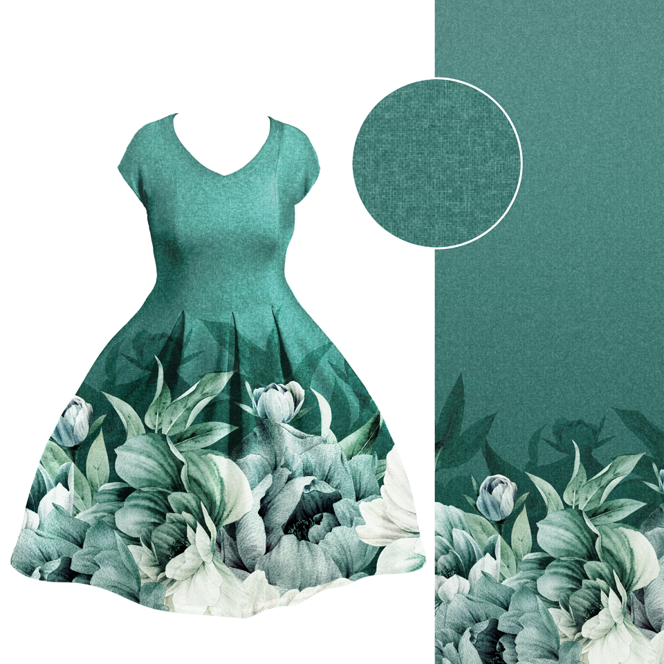 Die Bordüre ist einseitig un d ca. 55 cm hoch. Der Fadenlauf ist quer zum Muster, was jedoch kein Problem darstellt, da der Stoff in beide Richtungen gleich elastisch ist und auch in beide Richtungen gleich schön fällt.
