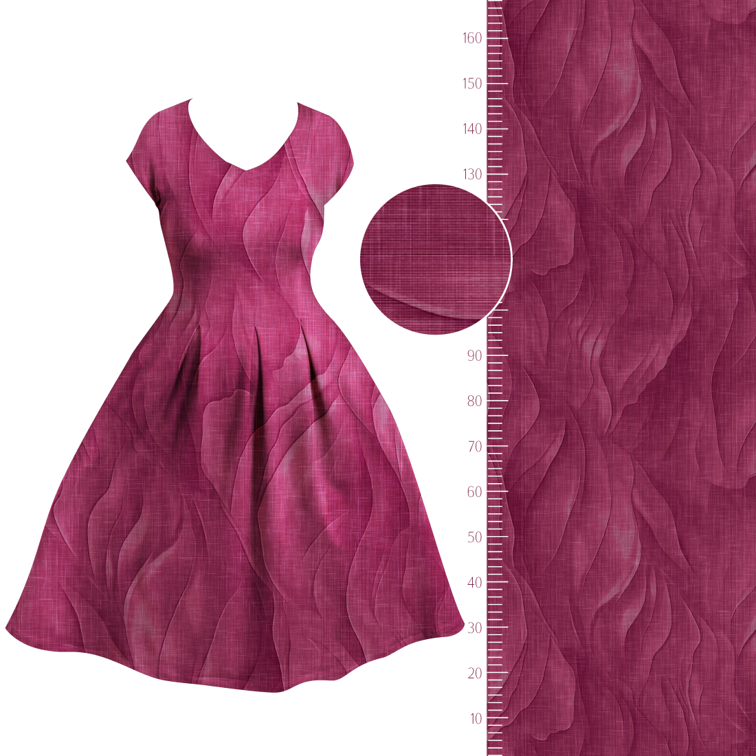 Der Fadenlauf des Stoffes ist quer zum Muster, was jedoch kein Problem darstellt, da der Stoff in beide Richtungen gleich elastisch ist und auch in beide Richtungen gleich schön fällt.