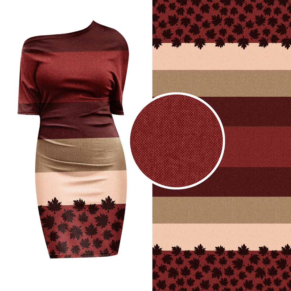 Die Bordüre ist zweiseitig und bietet genug Raum für kreative Kleidung. Der Fadenlauf ist quer zum Muster, was jedoch kein Problem darstellt, da der Stoff in beide Richtungen gleich elastisch ist und auch in beide Richtungen gleich schön fällt.
