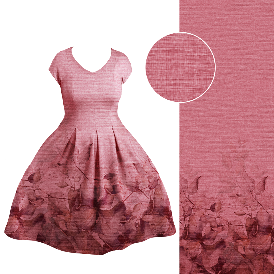Die Bordüre ist einseitig und ca. 60 cm hoch, für normal lange und Maxikleider geeignet. Der Fadenlauf ist quer zum Muster, was jedoch kein Problem darstellt, da der Stoff in beide Richtungen gleich elastisch ist und auch in beide Richtungen gleich schön fällt.