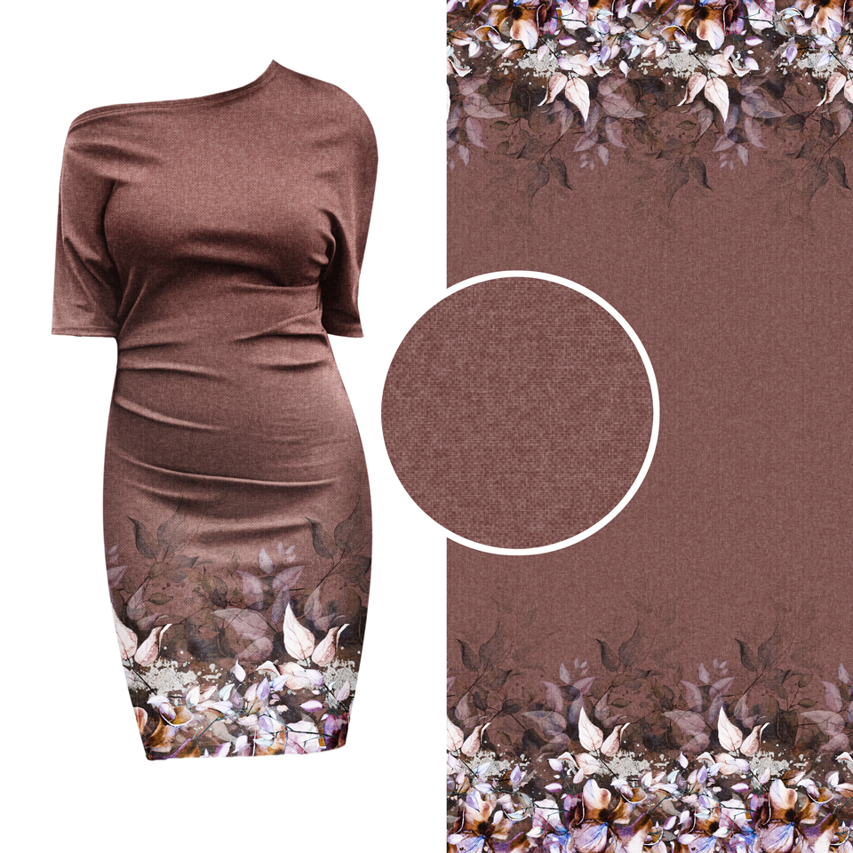 Die Bordüre ist zweiseitig und jeweils ca. 35 cm hoch, für normal lange und Maxikleider geeignet. Der Fadenlauf ist quer zum Muster, was jedoch kein Problem darstellt, da der Stoff in beide Richtungen gleich elastisch ist und auch in beide Richtungen gleich schön fällt.